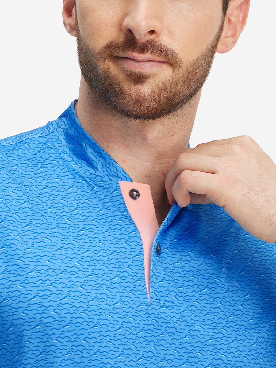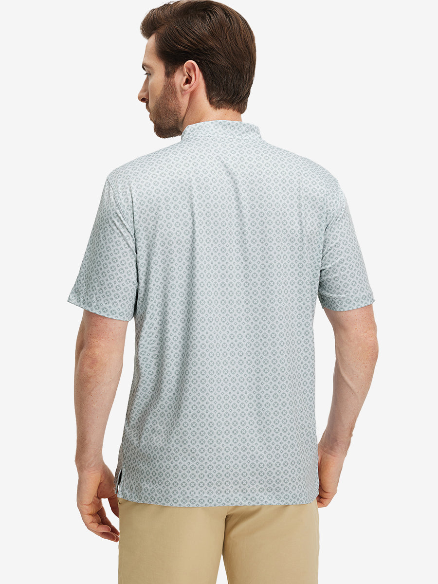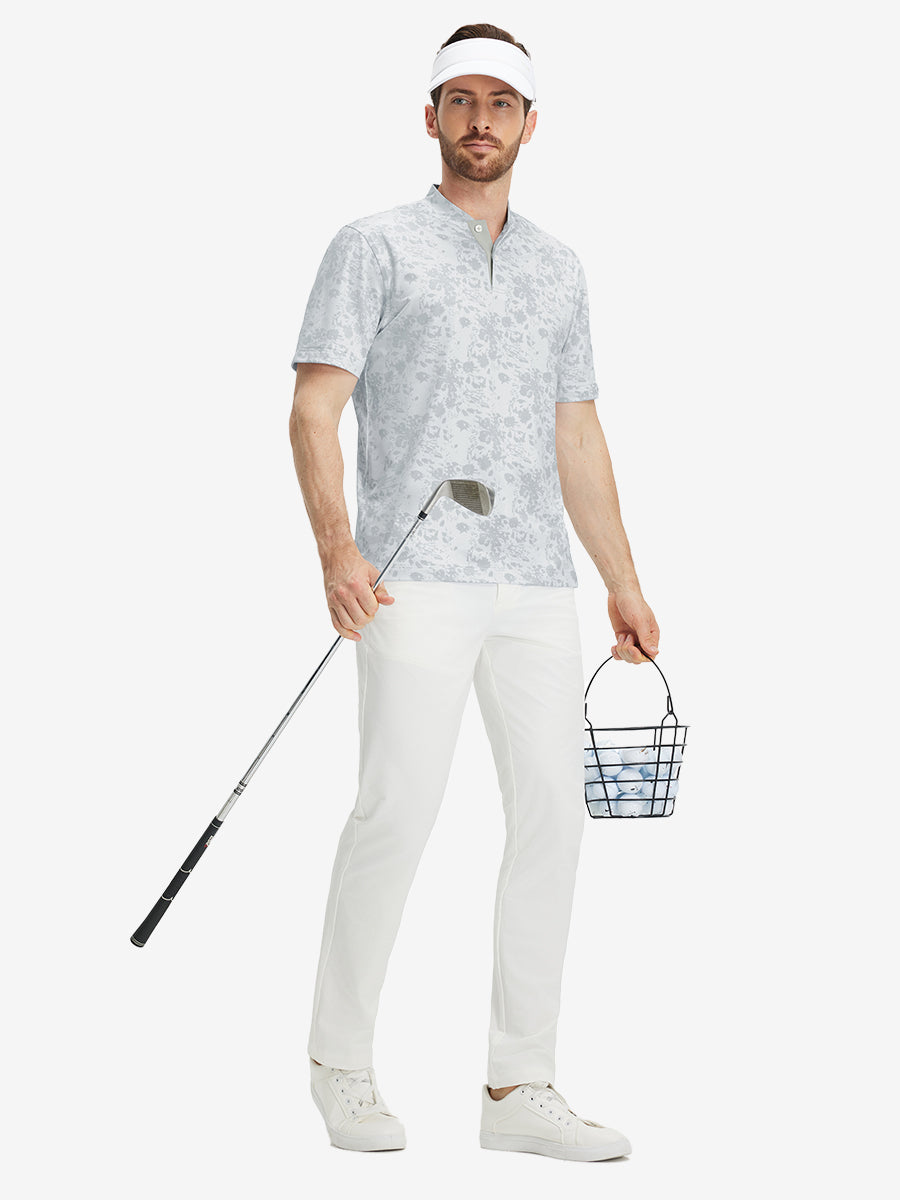 Stretch Printed Collarless Henley Golf Shirts