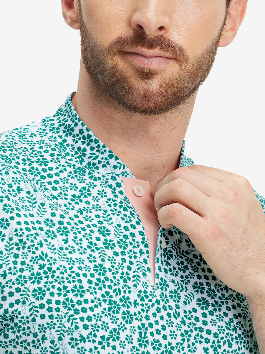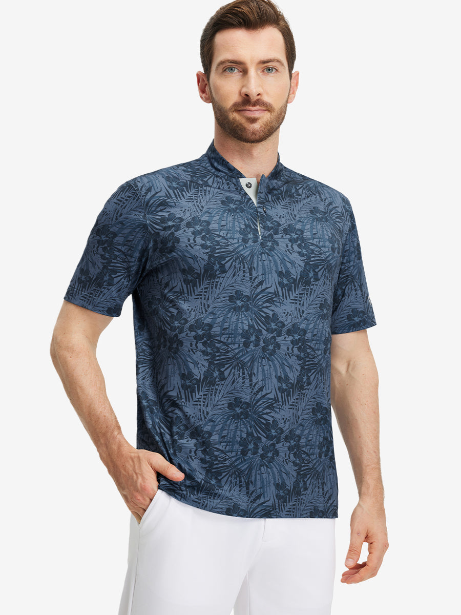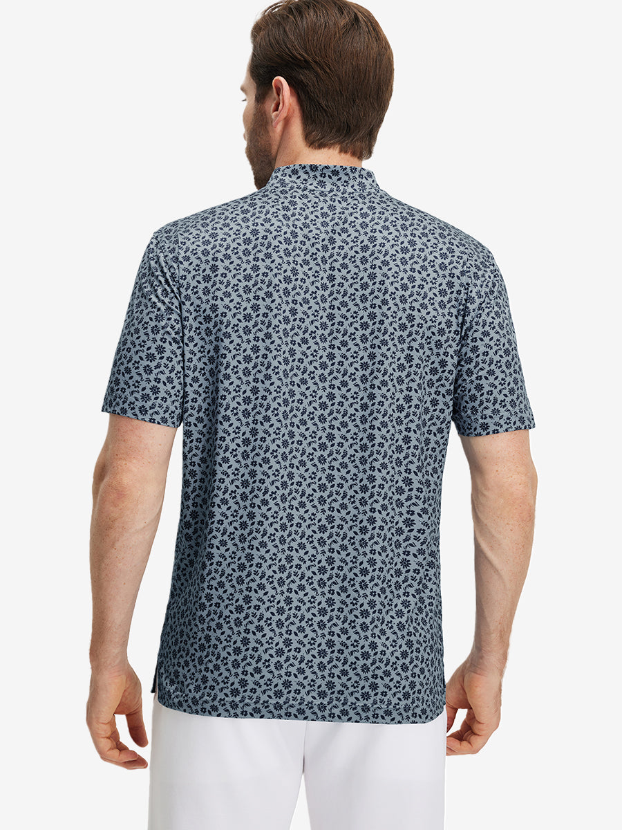 Stretch Printed Collarless Henley Golf Shirts