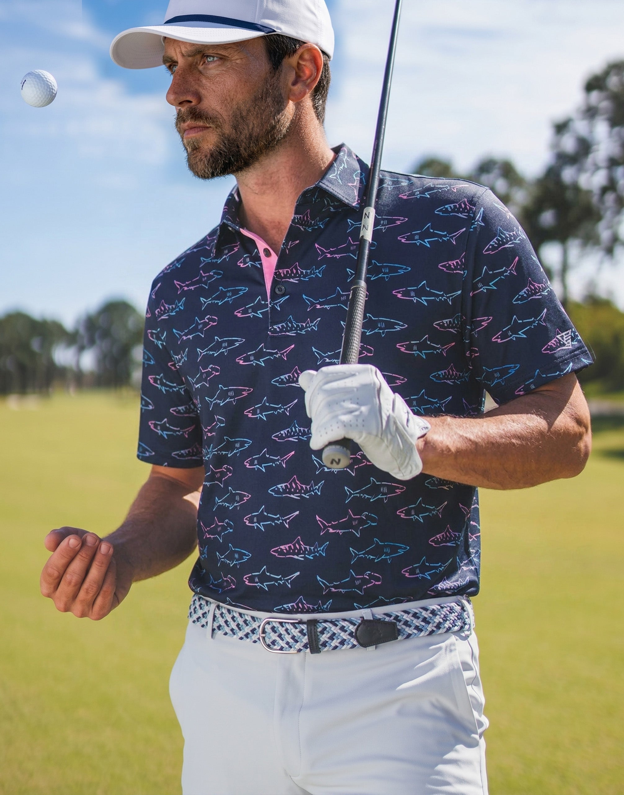 4 Way Stretch Print Collared Polo Shirts - MAELREG Direkt zum Inhalt