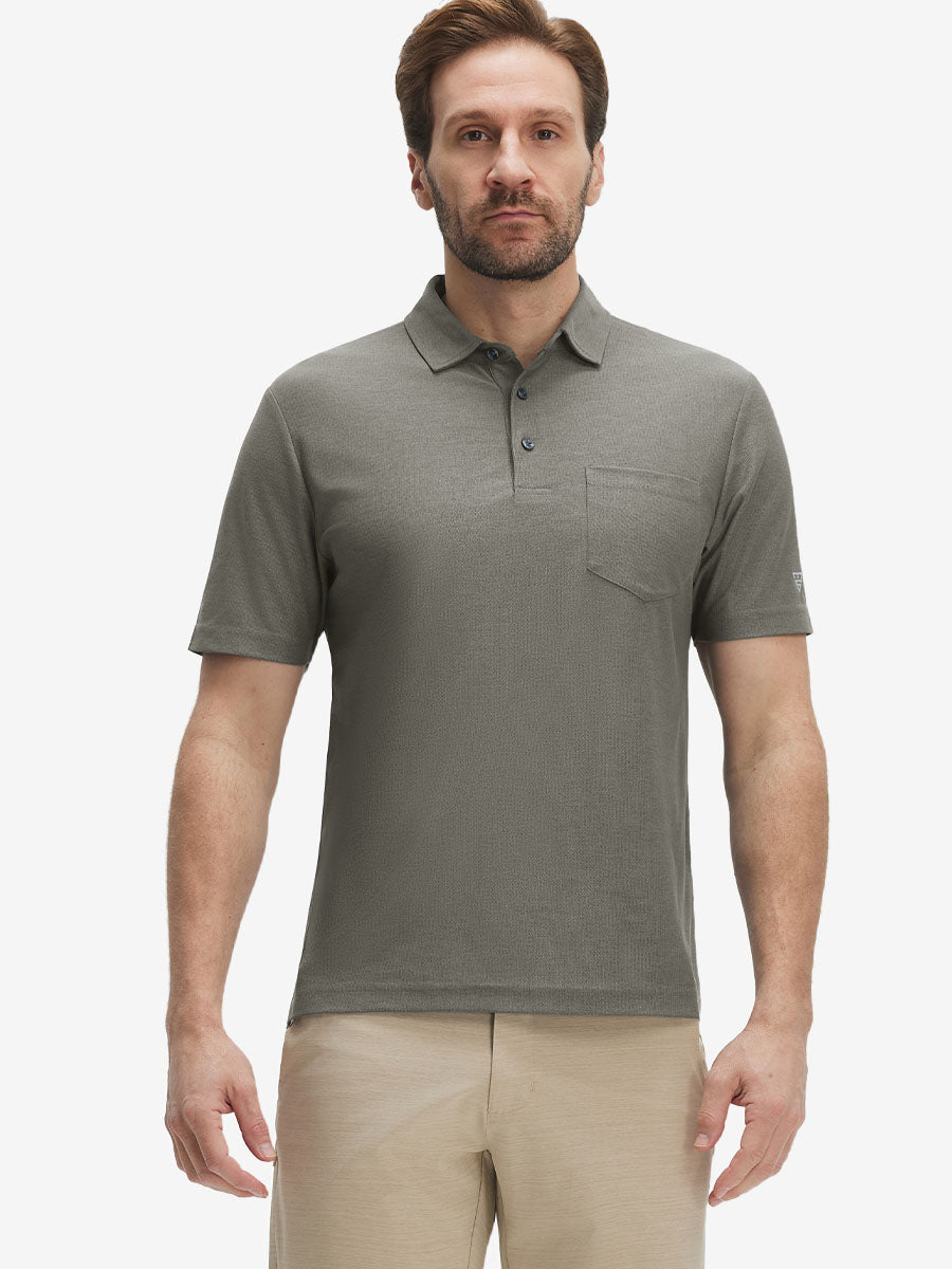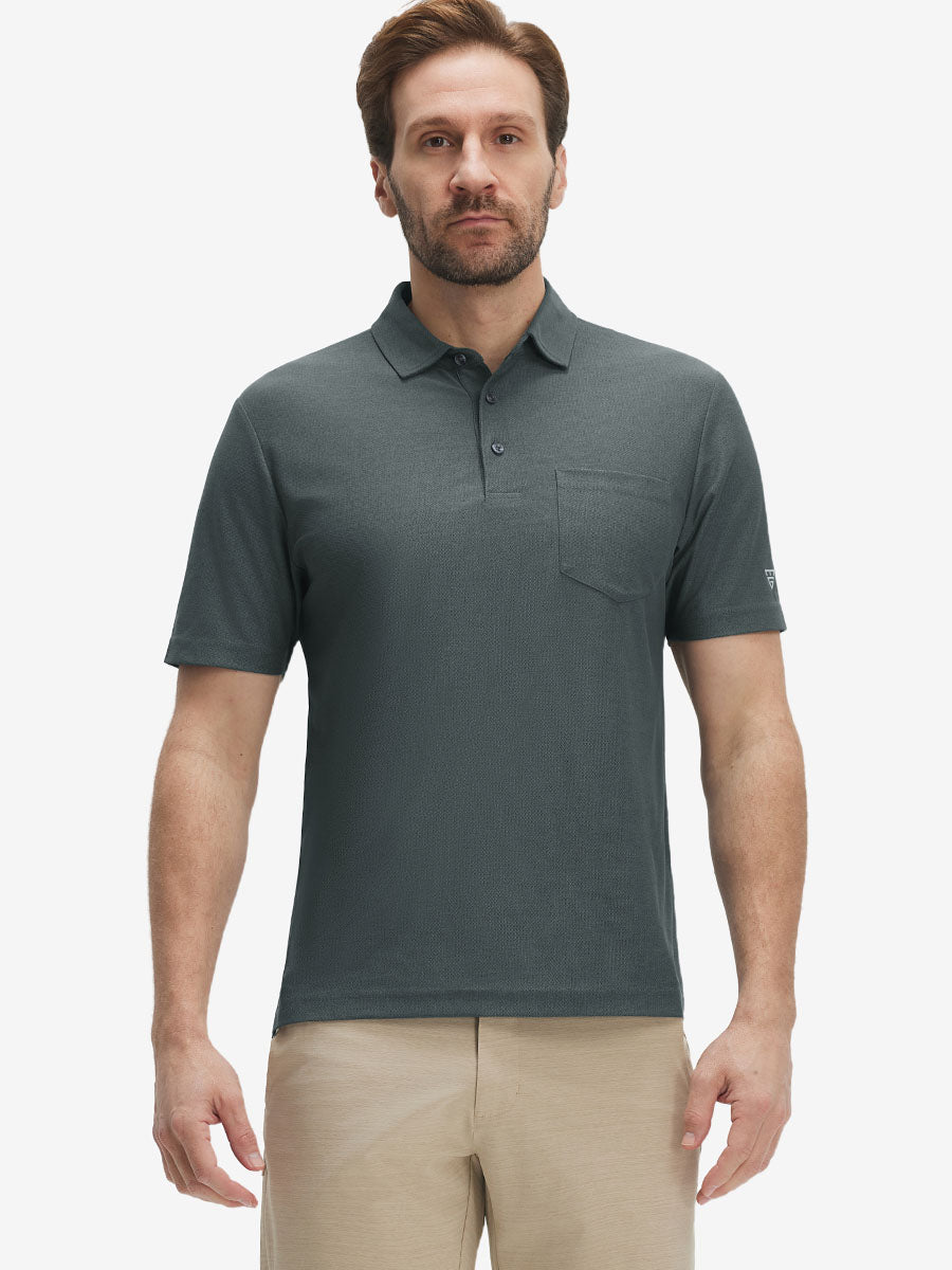 Moisture Wicking Heather Chest Pocket Golf Shirts