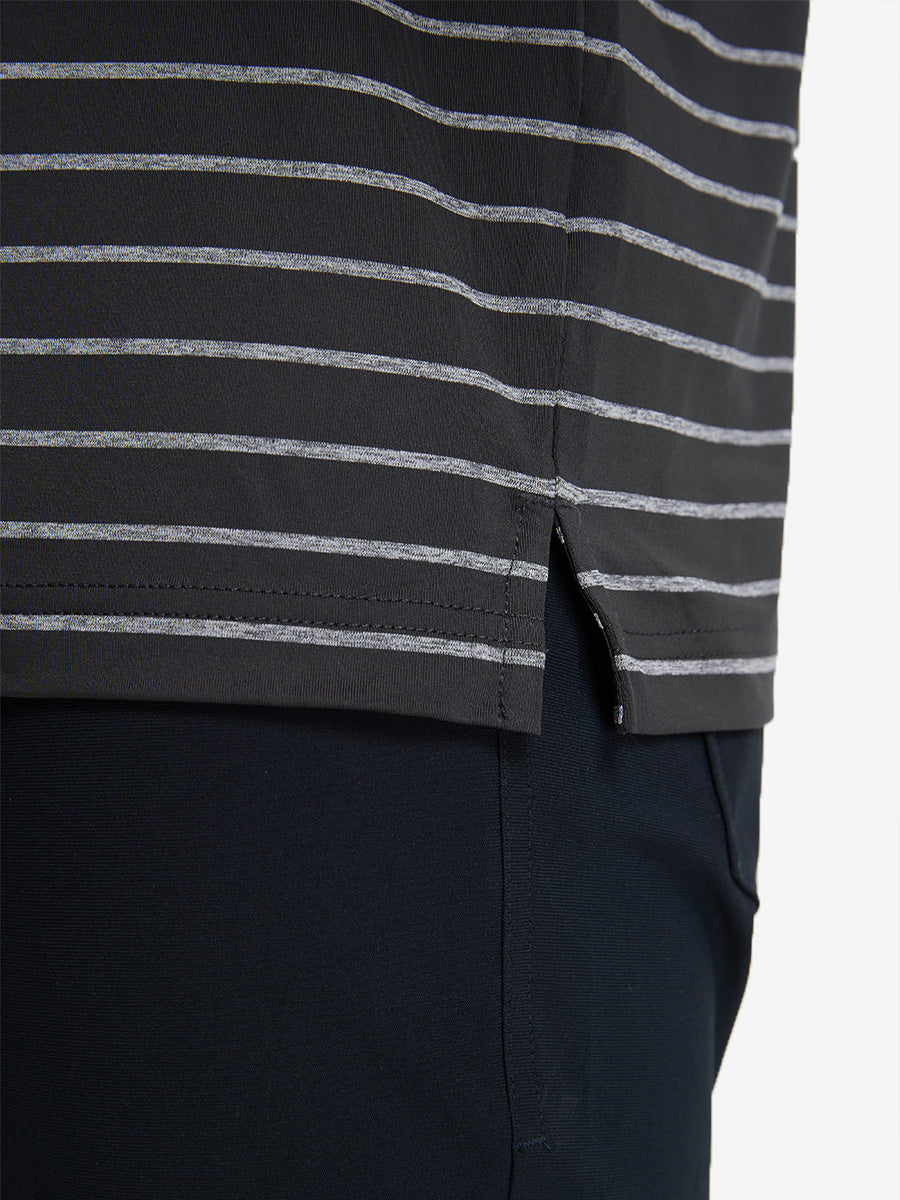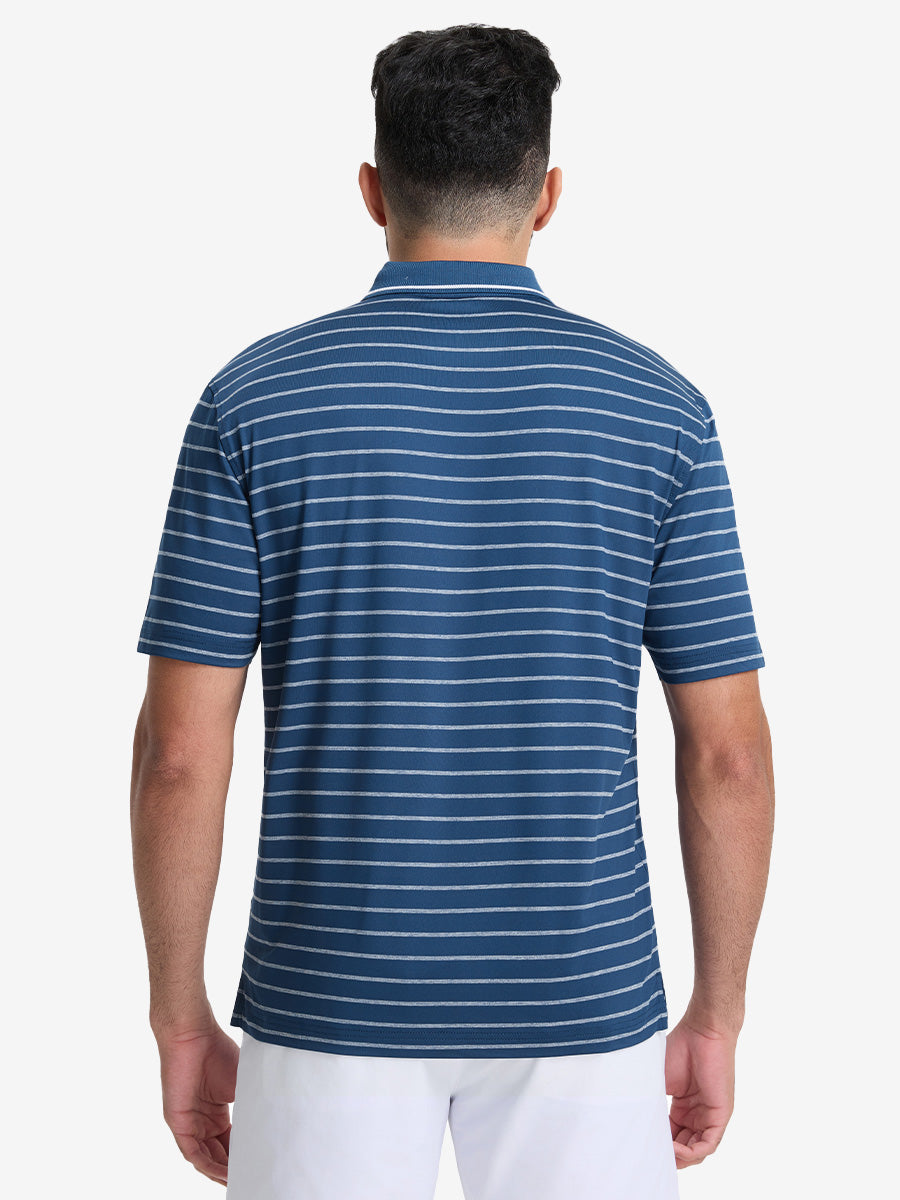 Non-Curl Ribbed Collar Striped Polo Shirts